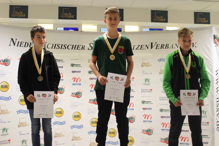 Überaus erfolgreich war das Abschneiden der Kreiskaderschützen an den letzten beiden Wochenenden bei der Landesverbandsmeisterschaft in Hannover. Die Wettkämpfe starteten , sowohl in der Schüler- ,als auch in der Jugendklasse mit dem Luftgewehr 3 Stellungskampf. Dabei ging gleich die erste Goldmedaille in der Schülerklasse an den Warberger Leon Warnstädt mit 578 Ringen. In der Mannschaftswertung gewann er dann auch noch, zusammen mit Cheyenne Engelken 567 Ringe, ebenfalls aus Warberg,und dem Süpplinger Alexej Belikov 551 Ringe, die in der Einzelwertung jeweils Platz 5 belegten, die Silbermedaille.